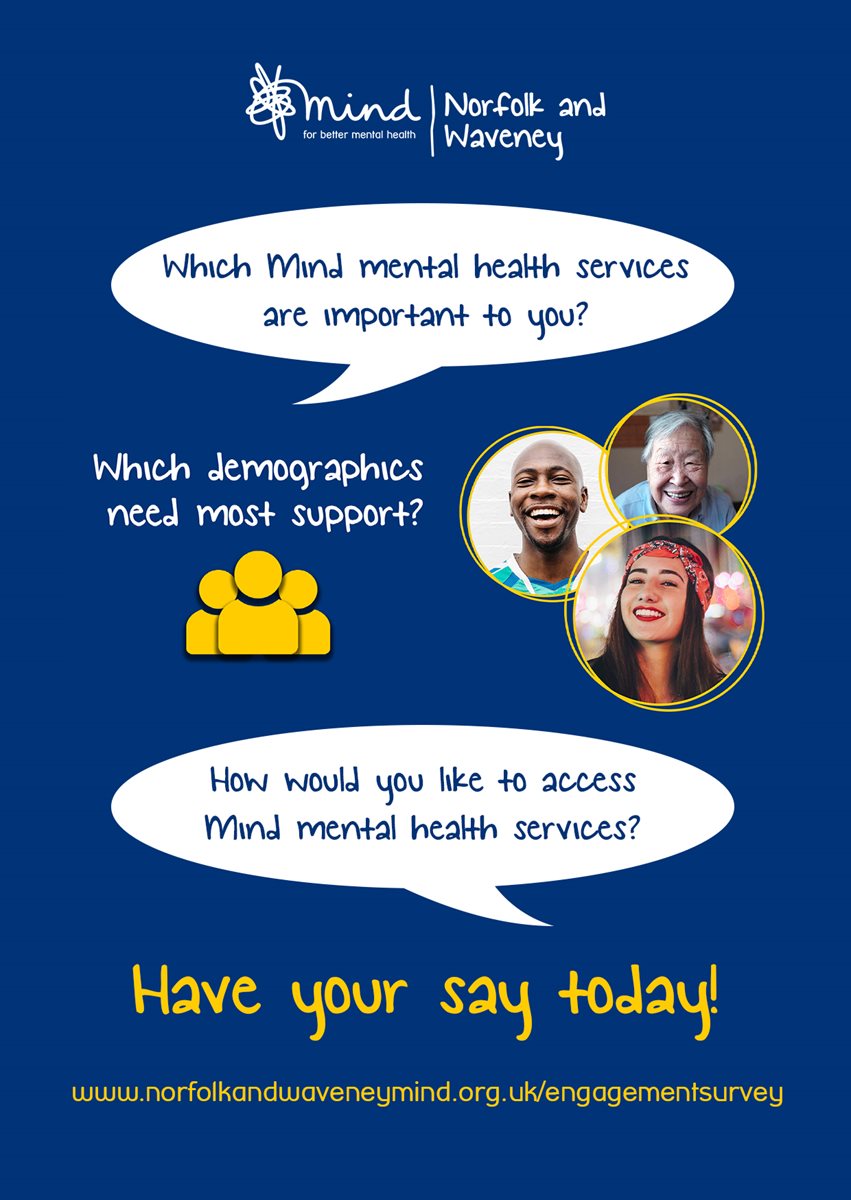 Help us shape the delivery of Mind services that best respond to the mental health needs of people living and working within Norfolk and Waveney.