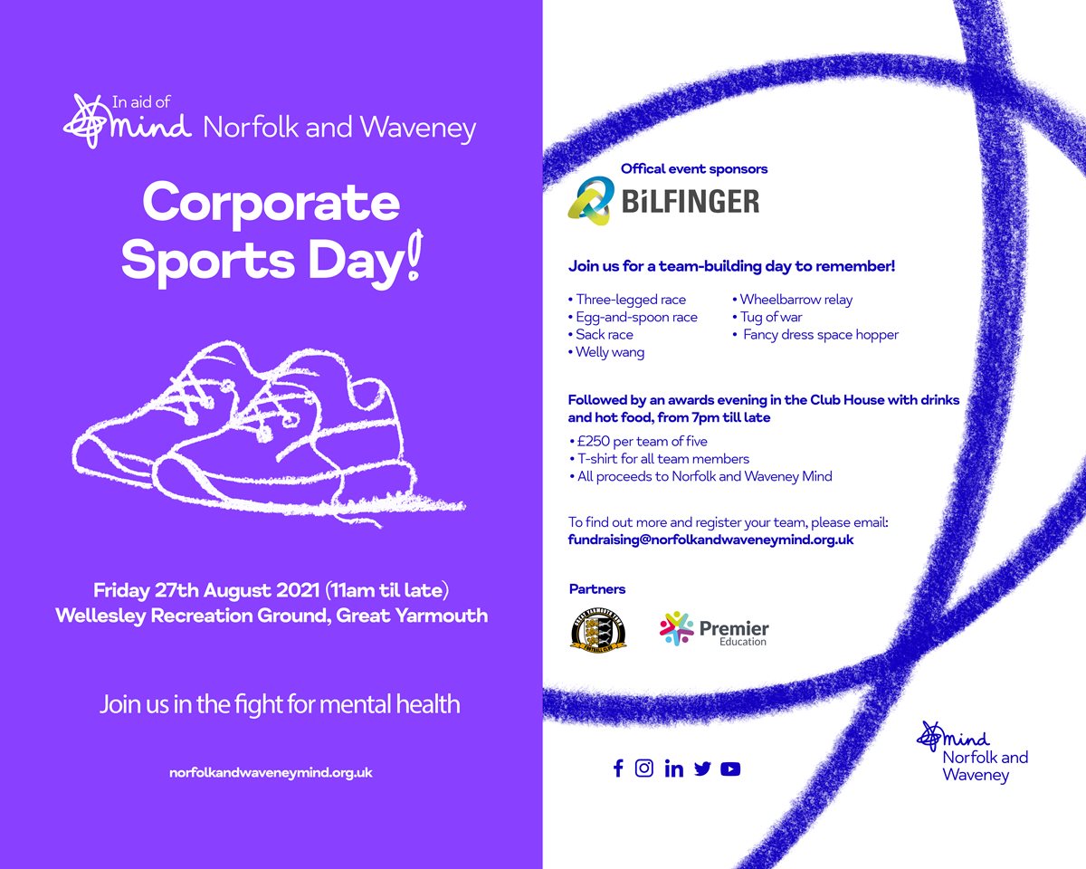 What better way to put a year of lockdown behind you than an old School Sports Day? Remember the fun, the competitiveness, and the glory! Why not re-live those days with a team building sports day event in aid of local Mental Health Charity Norfolk and Waveney Mind.