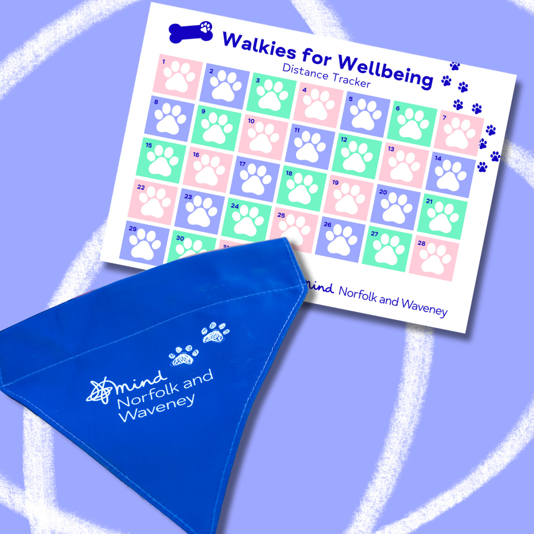If that isn’t enough of an incentive, we are offering a free Norfolk and Waveney Mind bandana for every dog who meets our fundraising target. And getting involved will bring benefits for your owners too – there are many known physical and mental health benefits linked to a daily dog walk.