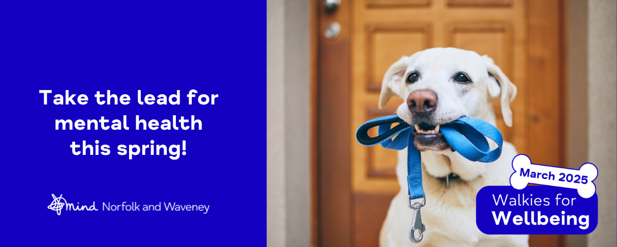 Norfolk and Waveney Mind’s Walkies for Wellbeing is the mental health charity’s returning fundraising challenge for March 2025. We are asking owners to walk their dogs a set distance during the month, we suggest one of the following distances: 50km, 75km or 100km - it doesn’t matter whether you are a Great Dane or a Chihuahua, you can choose what feels right for you. All funds raised will go towards running essential mental health services in Norfolk and Waveney.